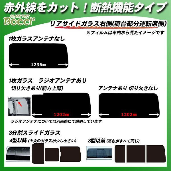 トヨタ ハイエース スーパーロング (KDH220/KDH221/KDH226/TRH226/GDH221/GDH226) IRニュープロテクション 熱整形一枚貼りあり カット済みカーフィルム 販売価格: 14,980 円(税込) 在庫状況: 在庫あり 発送目安: 2~8営業日程度 お支払い方法: クレジット支払い / 銀行振込 ポイント獲得: 1% 商品コード: toyota-ir-000133 数量:12345678910 ▼フィルムカラーIRストロングスモーク(透過率1%)IRスーパースモーク(透過率5%)IRプレミアムスモーク(透過率10%)IRダークスモーク(透過率15%)IRミドルスモーク(透過率25%)IRグリーン15(透過率16%)IRグリーン35(透過率36%)インフレットピュア90(透過率90%)+3000円 ▼リアガラスカット方法の選択貼り易さ重視カット熱整形済み一枚貼り +3000円プロ仕様カット(リア一枚貼り) ▼リアドアガラス右側(運転席)について(画像参照)3分割スライドガラス4型以降(中央が小さい)3分割スライドガラス3型以前(高さが同じ)1枚ガラス(高さ505mm)(4ドアのみ)1枚ガラス(高さ463mm) ▼リアドアガラス左側(助手席)について(画像参照)3分割スライドガラス4型以降(中央が小さい)3分割スライドガラス3型以前(高さが同じ) ▼リアサイドガラス右側(荷台部分運転席側)(画像参照)1枚ガラスアンテナなし(幅1236mm)切り欠きあり(前方上部)アンテナあり切り欠きなし3分割スライドガラス4型以降3分割スライドガラス3型以前 ▼リアサイドガラス左側(荷台部分助手席側)(画像参照)1枚ガラス(幅1236mm)1枚ガラス(幅1218mm) ▼リアガラス形状について(画像参照)AタイプBタイプCタイプ ▼ドア枚数(例:5ドア)4ドア ▼年式を入力(例:平成21年5月) ▼型式(例:ZVW30) お気に入りに追加